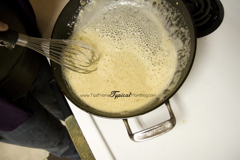 5. In small, heavy saucepan melt butter. Add flour and mix well with a whisk. Cook over medium-low heat until mixture bubbles, stirring 2 to 3 minutes to make a roux. The roux should be thick and start to turn a light brown, tan color.