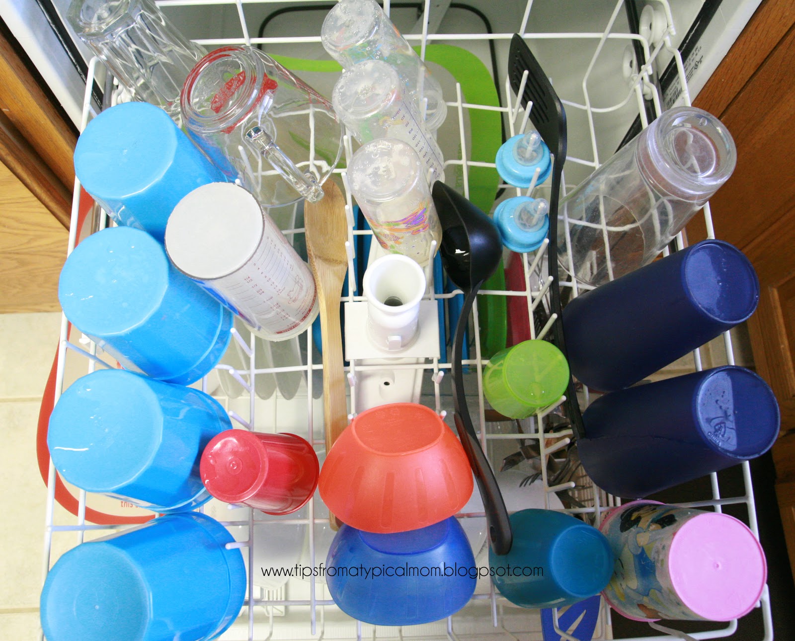 I don’t know about you, but in my home, with 5 kids, our dishes pile up high by the end of the day. Each day it’s someones responsibility to do the dishes. Sometimes we can fit everything in the dishwasher, sometimes we “can’t fit everything”! Yeah, right! I know I can fit everything in there… I would always say. 😉 So I decided my kids needed a little help. I came up with the brilliant idea (if I do say so myself) of taking a picture of the dishwasher loaded up, printing it and keeping it close by so whomever is loading the dishes will know exactly where to put everything. Now there are no more excuses for a messy, dishes getting thrown all over the place because they weren’t put in the right place, job. Here is what my pictures look like. Don’t judge me, we don’t have nice dishes. Remember… I HAVE 5 KIDS. Why would I buy nice things? Huh?
