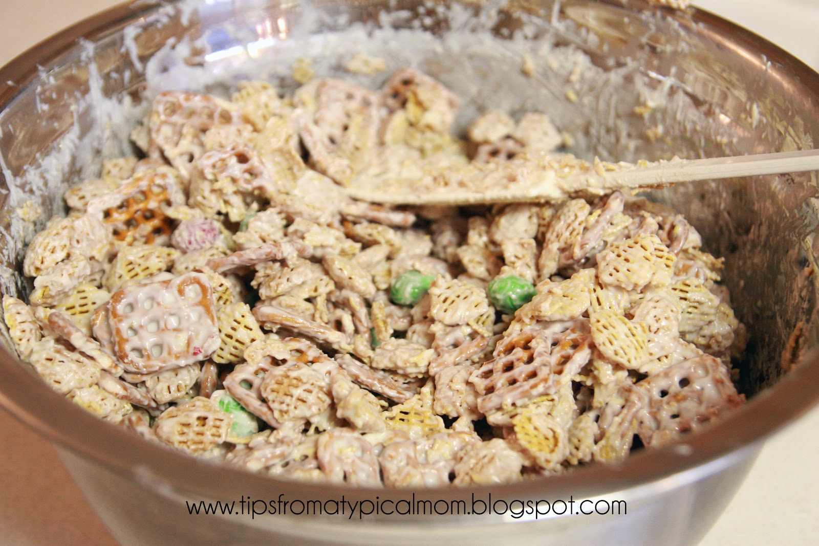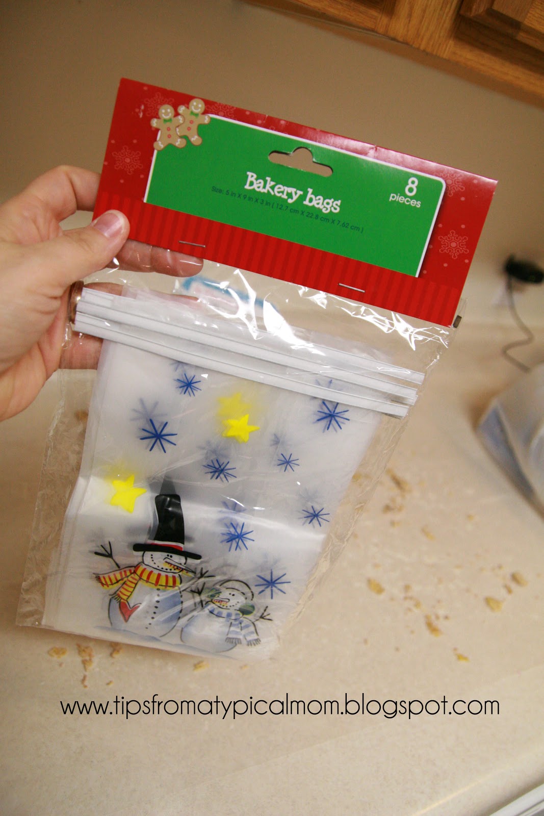 I found these cute Bakery Gift Bags at “Dollar Tree”. This recipe filled 6 of them half way full. So make more or less according to how much you need.