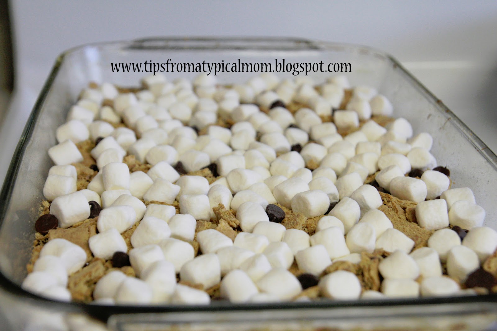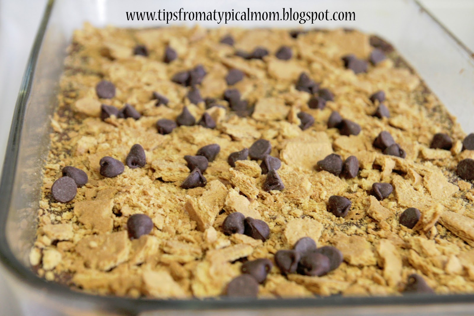 3. Remove brownies from oven when 12 minutes is up. Sprinkle with graham crackers…