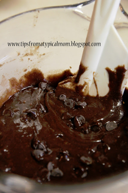 1. Mix the brownie batter according to the box directions. Mix in a cup of chocolate chips. Spray your pan with non stick cooking spray. Add the brownie mix to the pan. Cook for 12 minutes at 350 degrees.