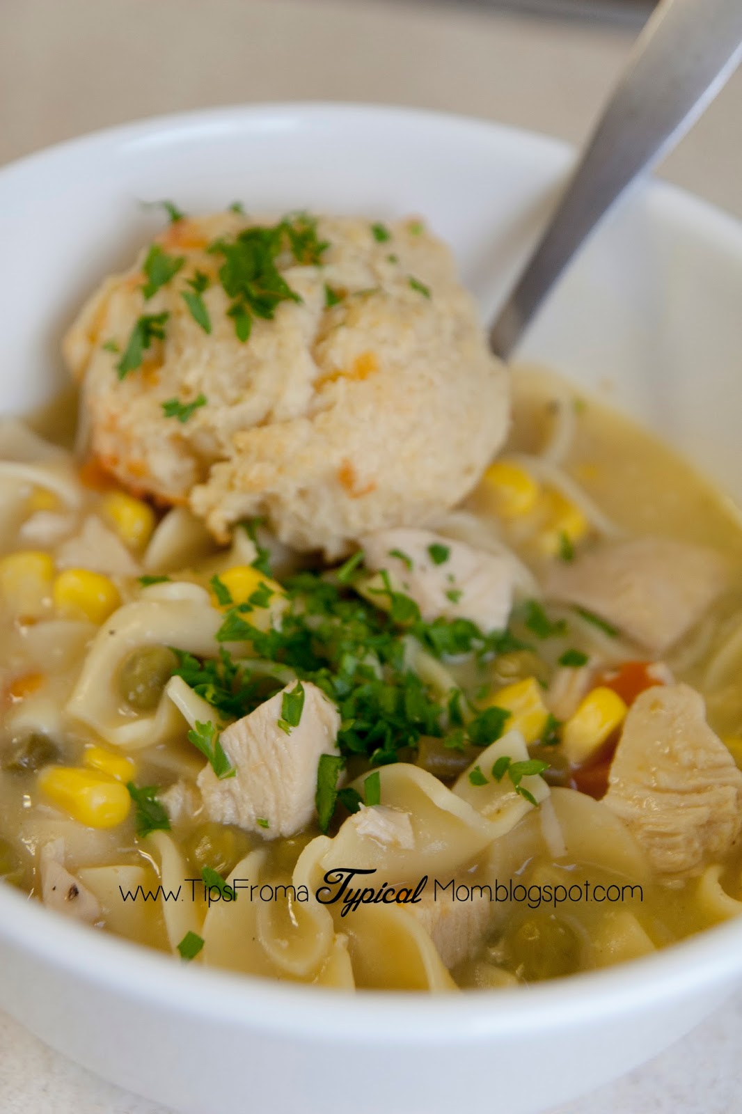 It’s called Chicken Pot Pie soup because it tastes just like the inside of a chicken pot pie. Â Serve with these easy yummy Cheese Biscuits, and you have a makeshift pot pie.