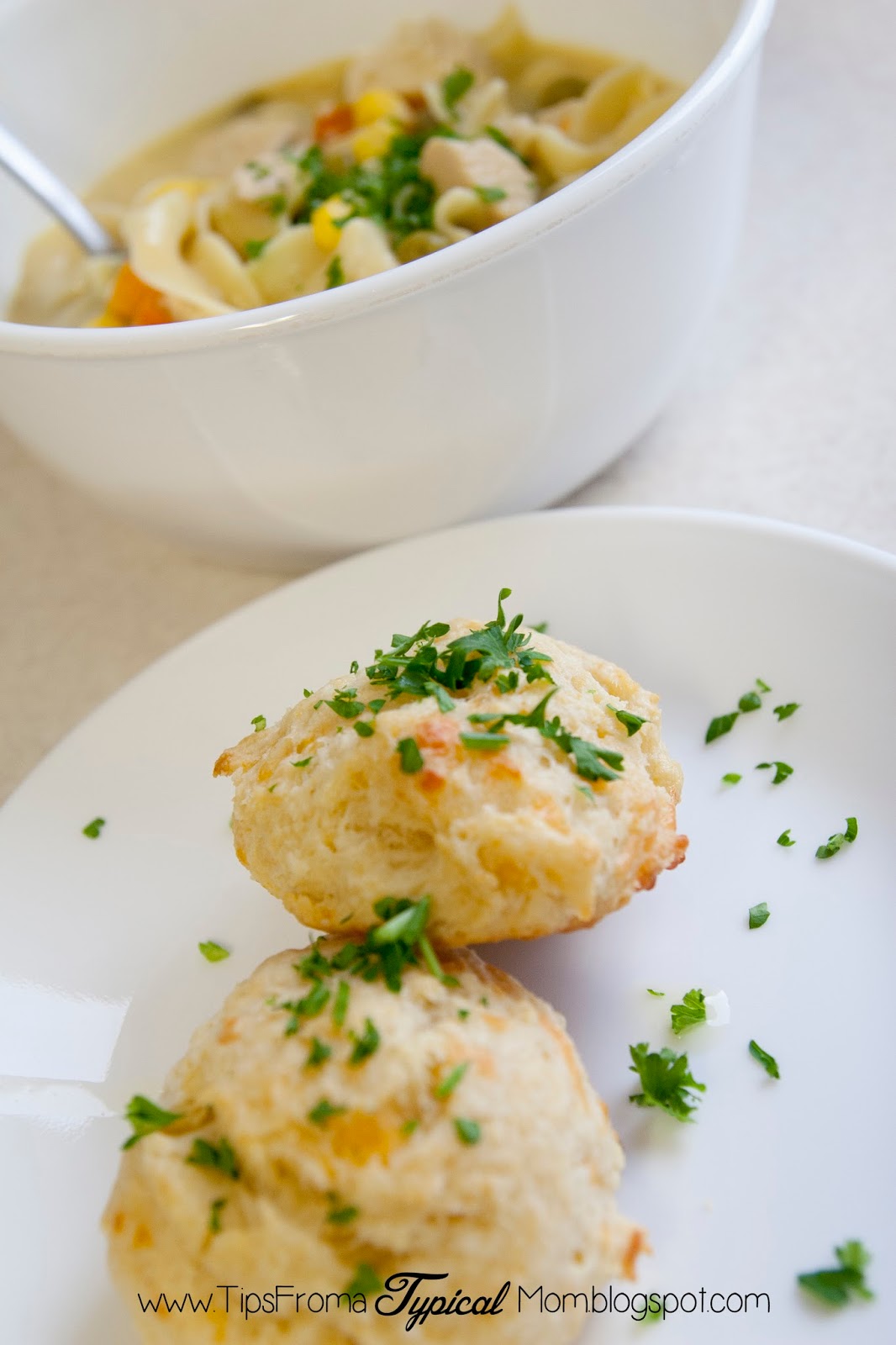 I am not normally a biscuit lover, but when I saw these floating around Pinterest I thought they would be the perfect side kick for my Chicken Pot Pie Soup. So I made them.