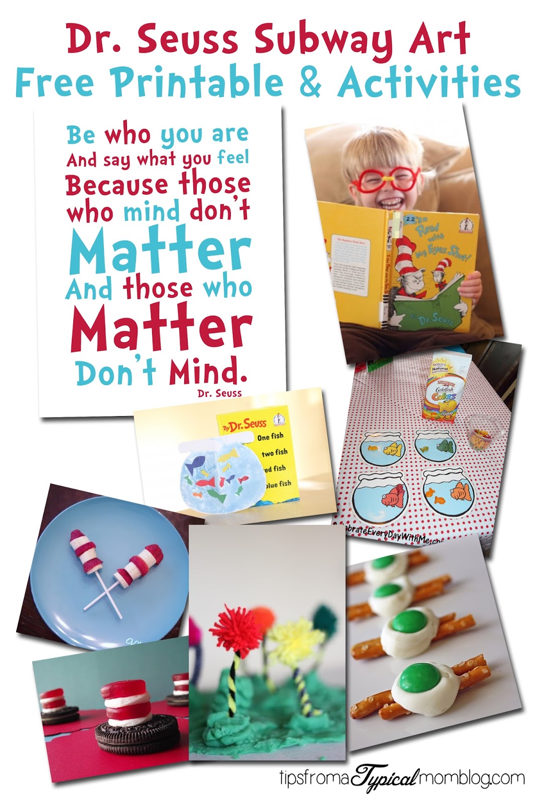 You can download this Free Dr. Seuss Printable Quote (“Be who you are and say what you feel. Because those who mind don’t matter and those who matter don’t mind”) and display it on his birthday in your home. This is my favorite quote by Dr. Seuss. You can download it here.