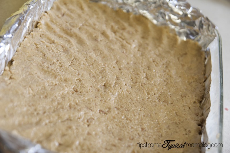 4. Press the peanut butter mixture into the bottom of the pan.