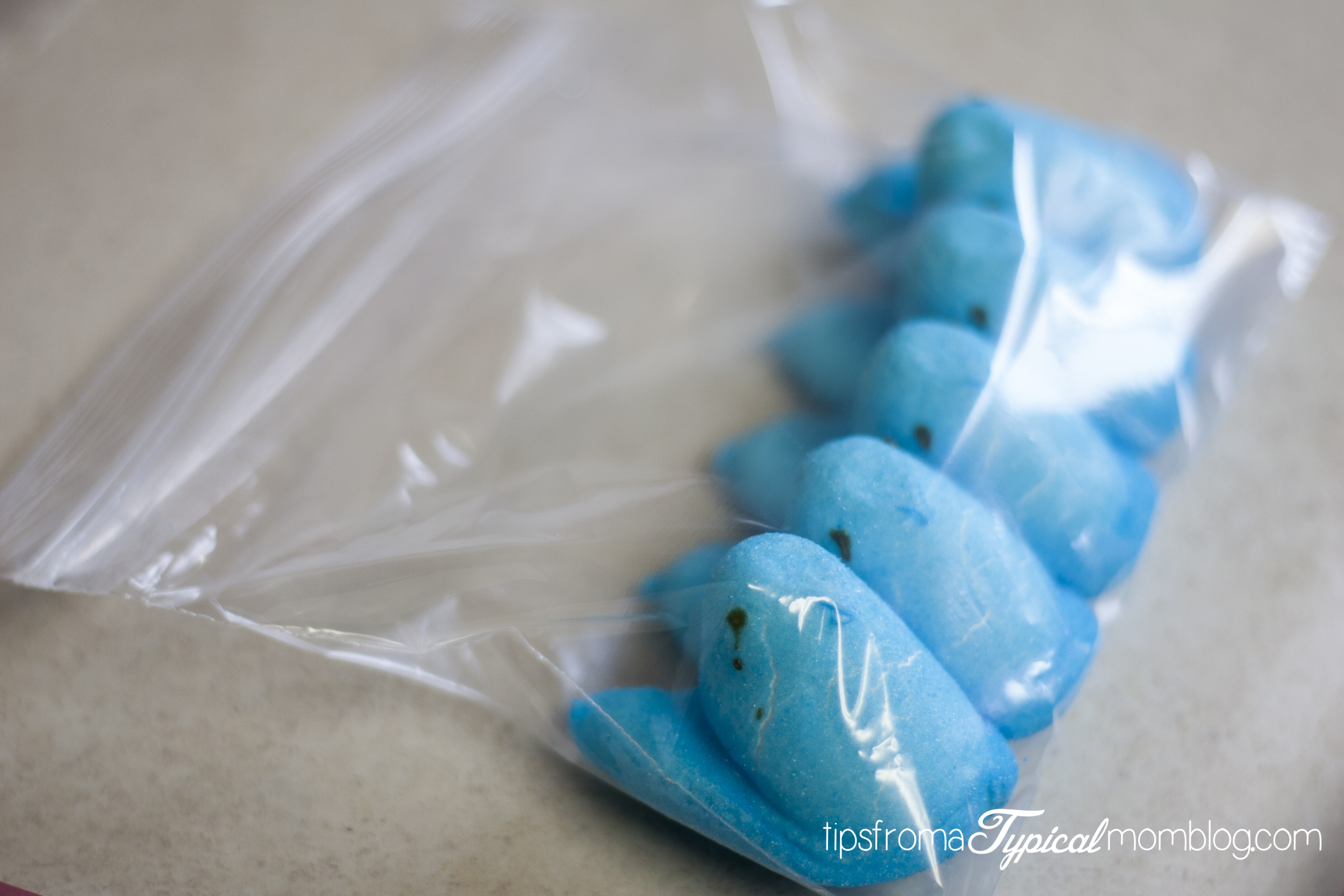 Add a single sleeve of chick peeps to a zip lock sandwich bag: