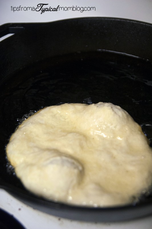 6. In a deep heavy pot, heat about 2 inches of vegetable oil on medium high heat until it reaches 350 degrees. (you can test it by adding a small pinch of dough and see if it bubbles)