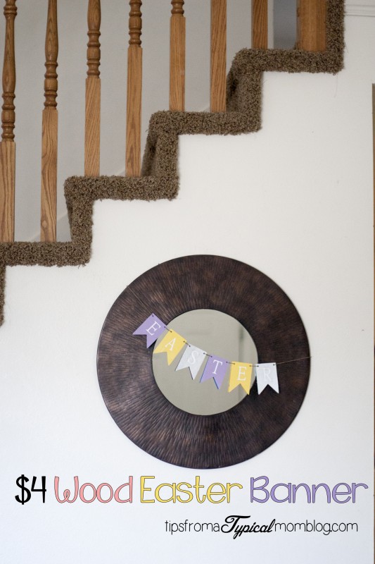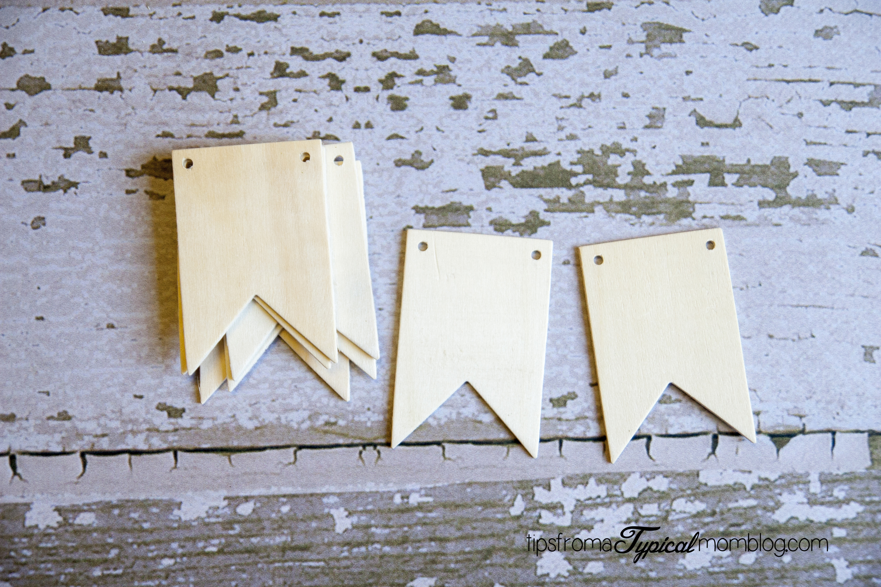 I got these super cute wood banner cut outs at Michaels. They were only about $0.29 each. So cheap! Then I just bought skinny twine which will last through many banners that I will soon be making. You know what’s awesome? You can make these reversable because there are SO many 6 letter words I came up with for almost every holiday.