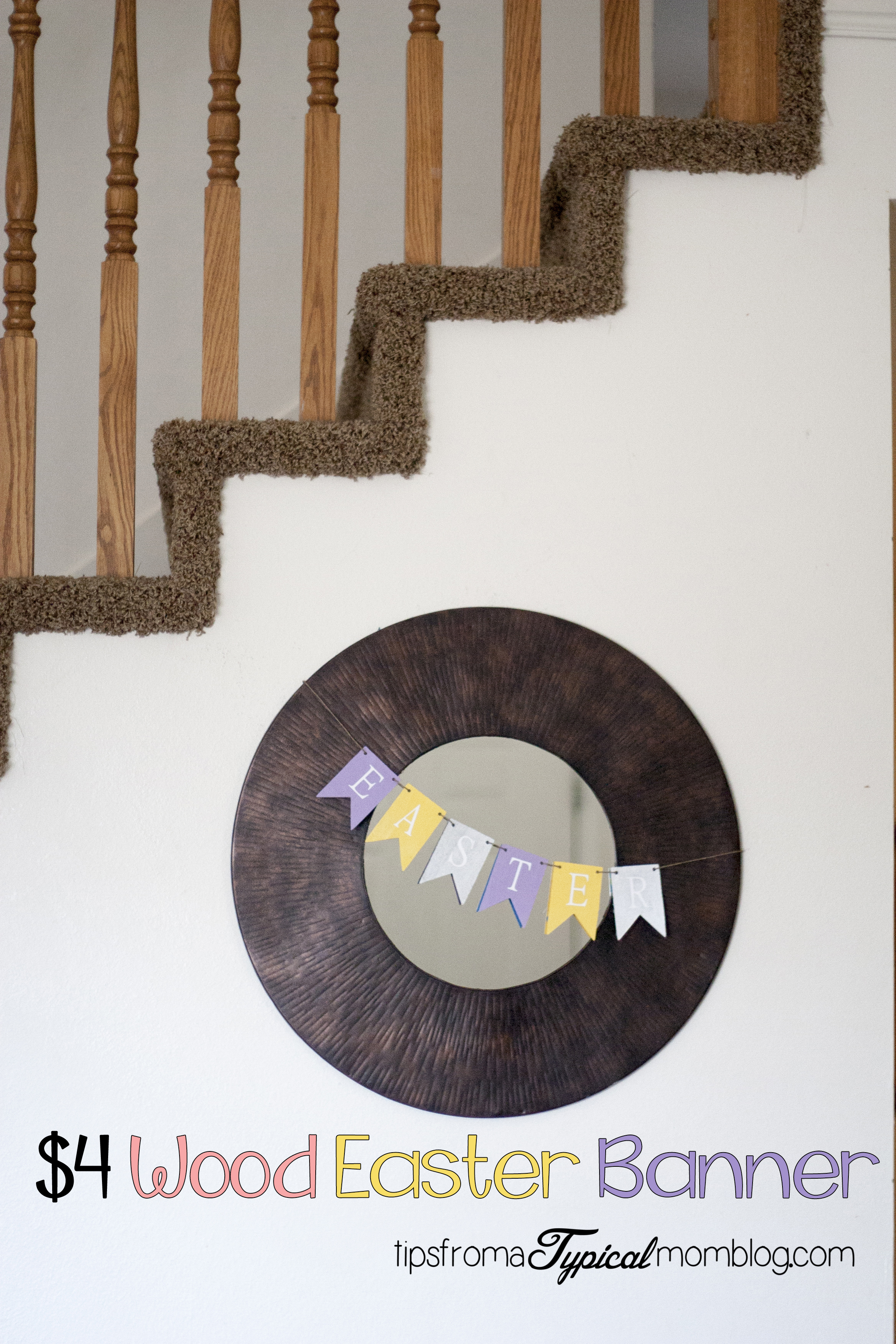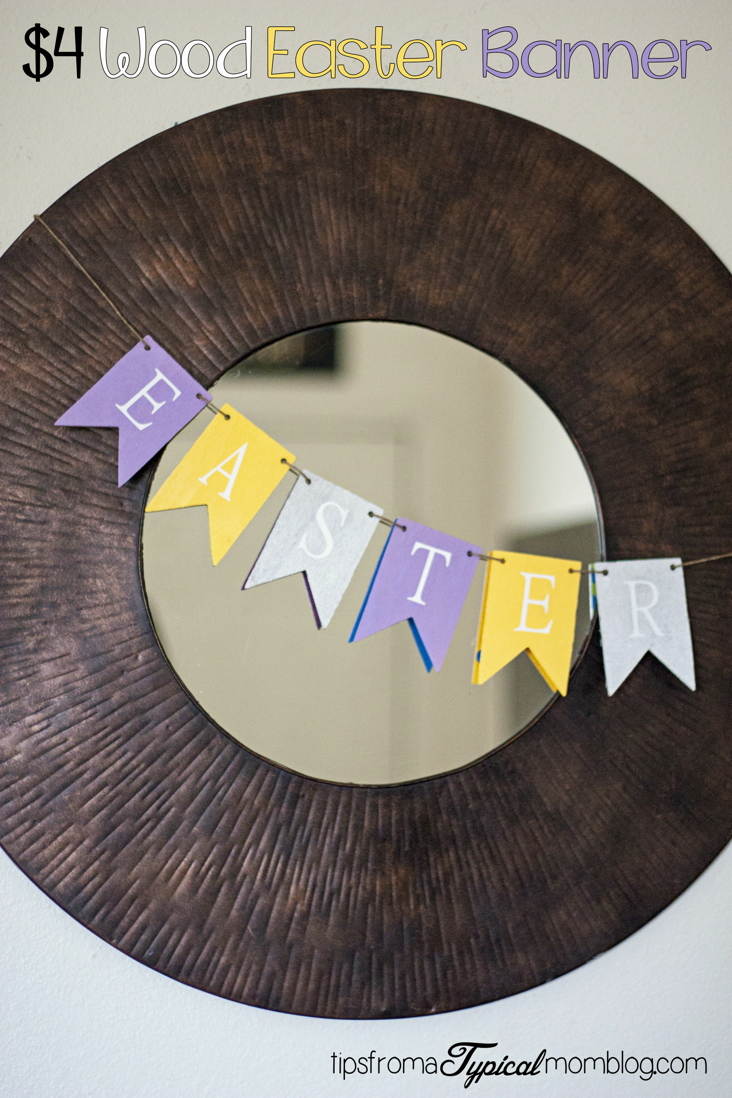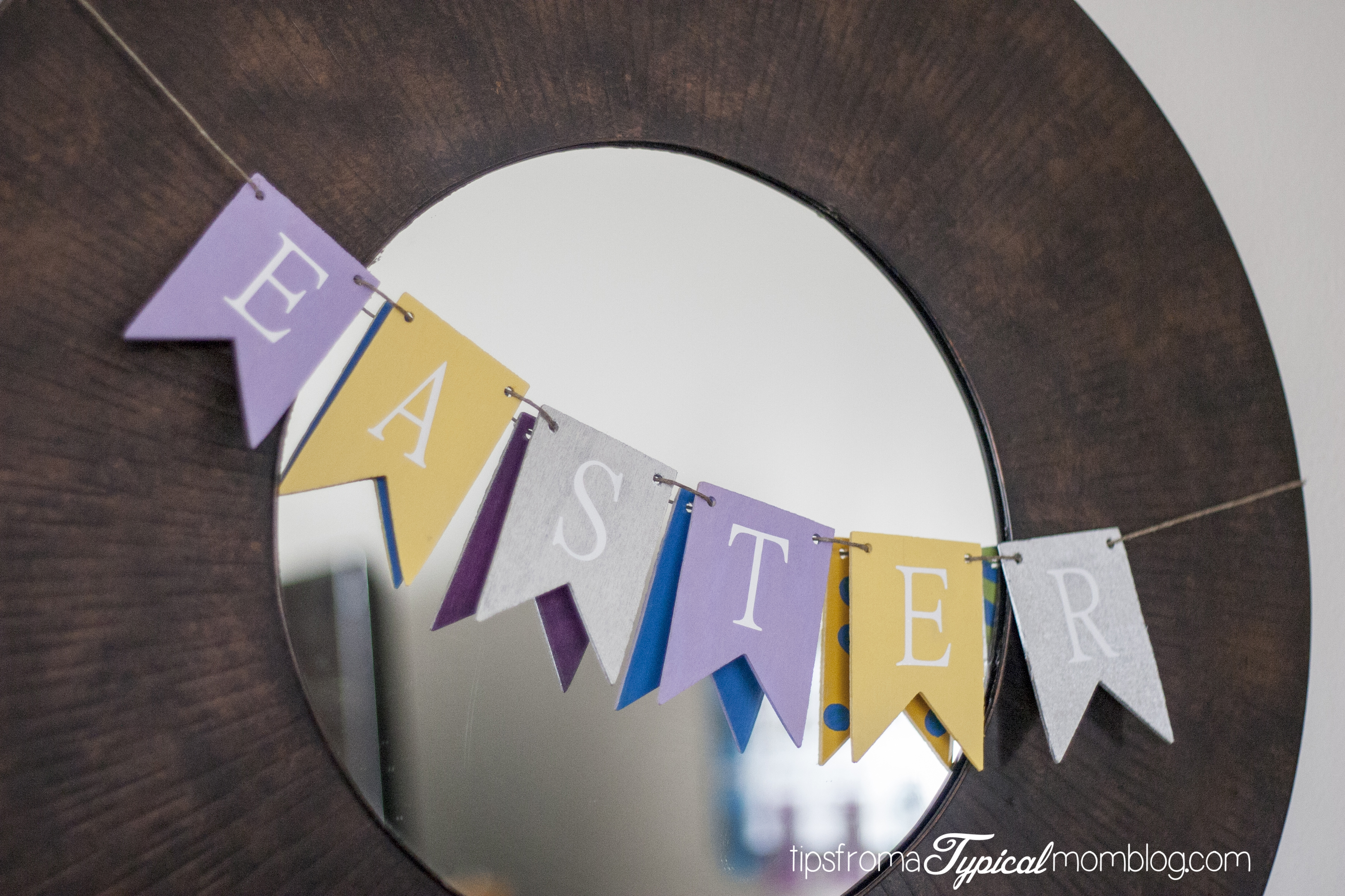I’ve been having a lot of fun with this yellow and purple spray paint from Krylon. This is the 4th project I’ve made with just one can of paint in each color. Today I added a metalic silver to the mix for my DIY Wood Easter Banner Craft. This was SO easy and fast. If you have a vinyl cutter or a friend that has a vinyl cutter, it will be even easier.