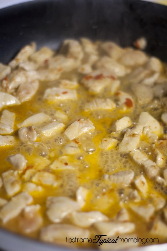 Serves about 6. Can be a little spicy, so if your kids don’t like spice, you can leave some chicken out of the pan and don’t add the chili sauce to it. Drink milk!!