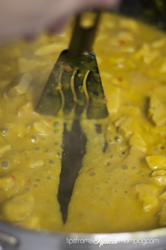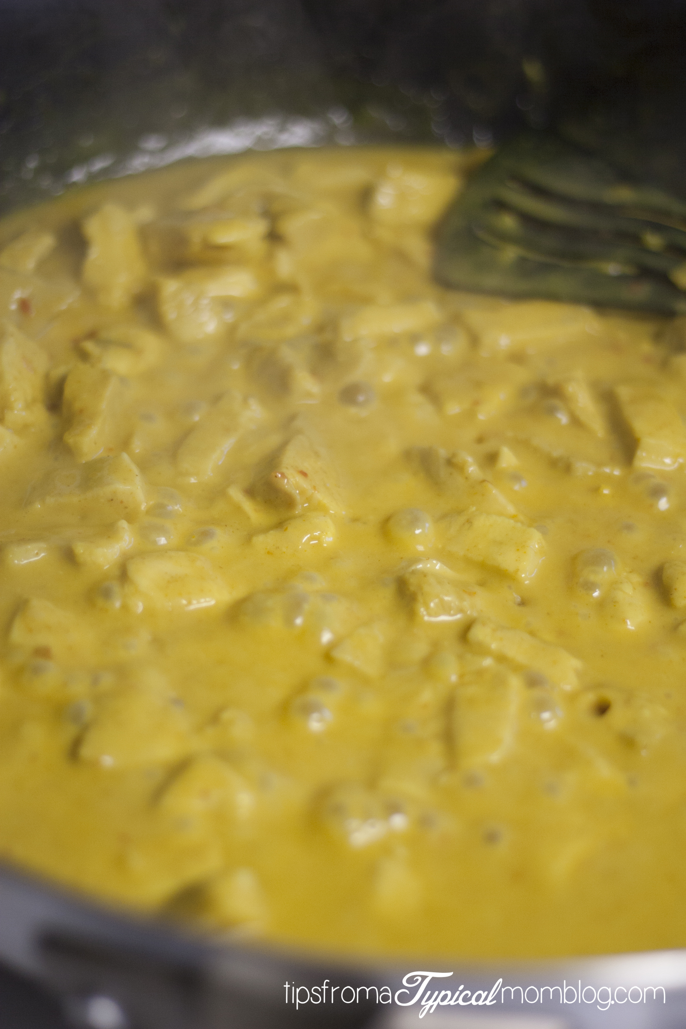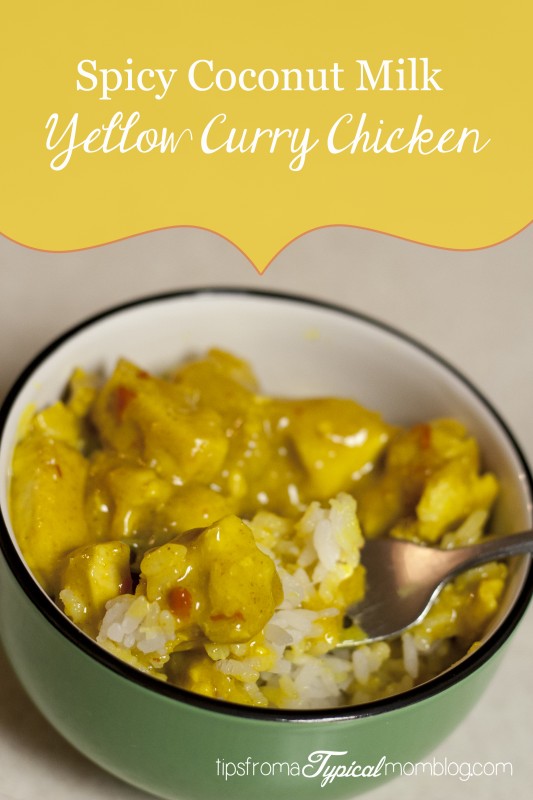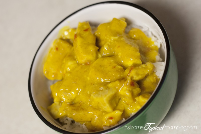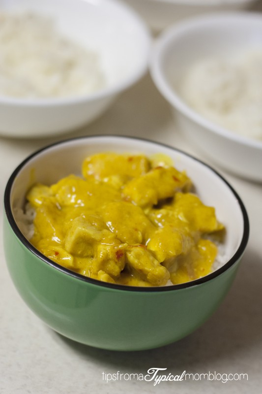 My husband surprises me sometimes. When he makes dinner, it’s usually mac ‘n cheese with cut up hotdogs or leftovers from the fridge. But every once in a while he gets inspired to be a chef. He made up this recipe on his own. It tastes just like yellow curry chicken, but I think it’s much easier than any of the recipes I’ve tried. So we are calling it Spicy Coconut Curry Chicken and Rice.
