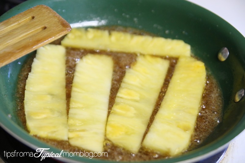 Now add your fresh pineapple and let cook for about 2 minutes on each side.