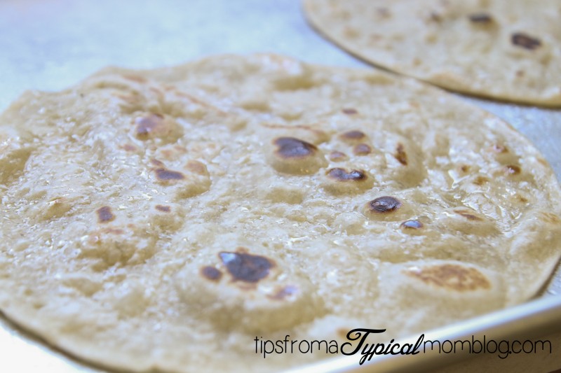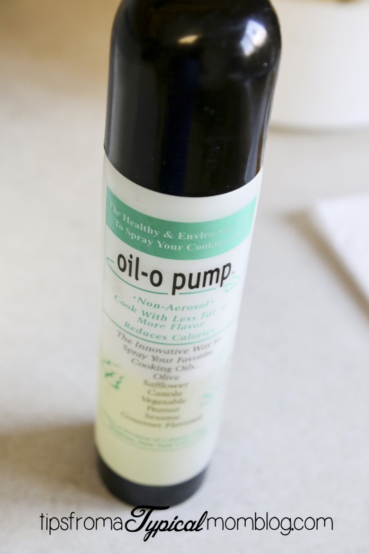 Then you will spray both sides of one of your cooked tortillas with oil.