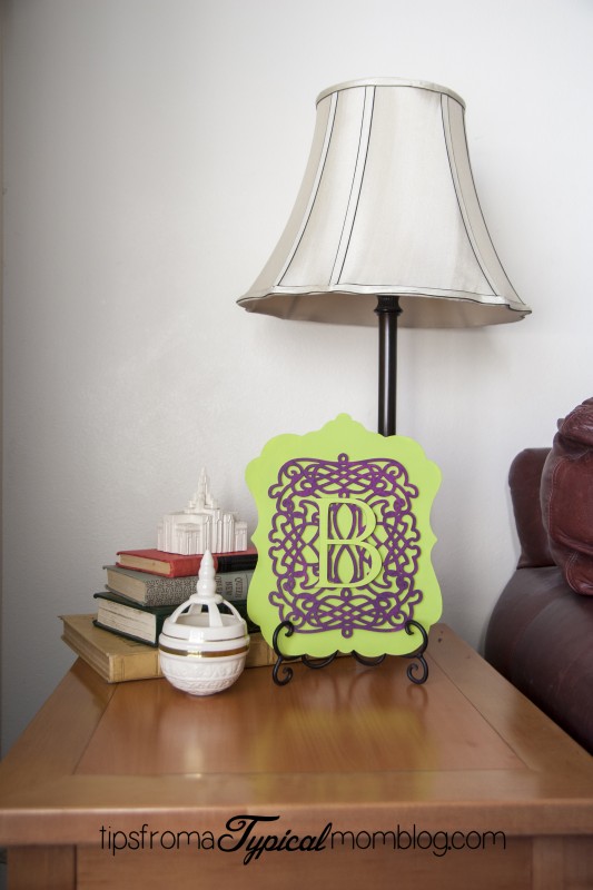 Any-who! I just love this monogram project from Michaels Craft Stores. All you have to buy is 3 pieces, paint and glue. So inexpensive and I love how it turned out. No, the colors don’t even match my home decor, but I love the colors I painted them and I still display it proudly on my end table.