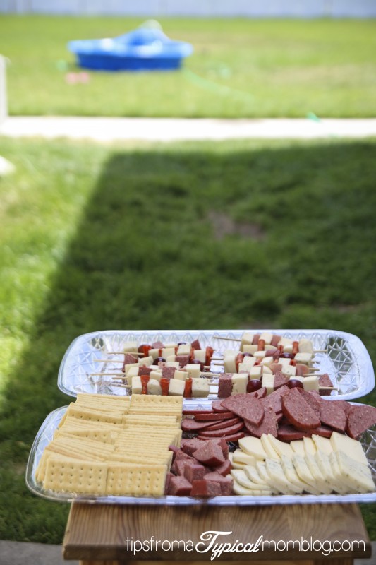 Then I arranged the left over summer sausage, sliced cheese and crackers onto a platter.