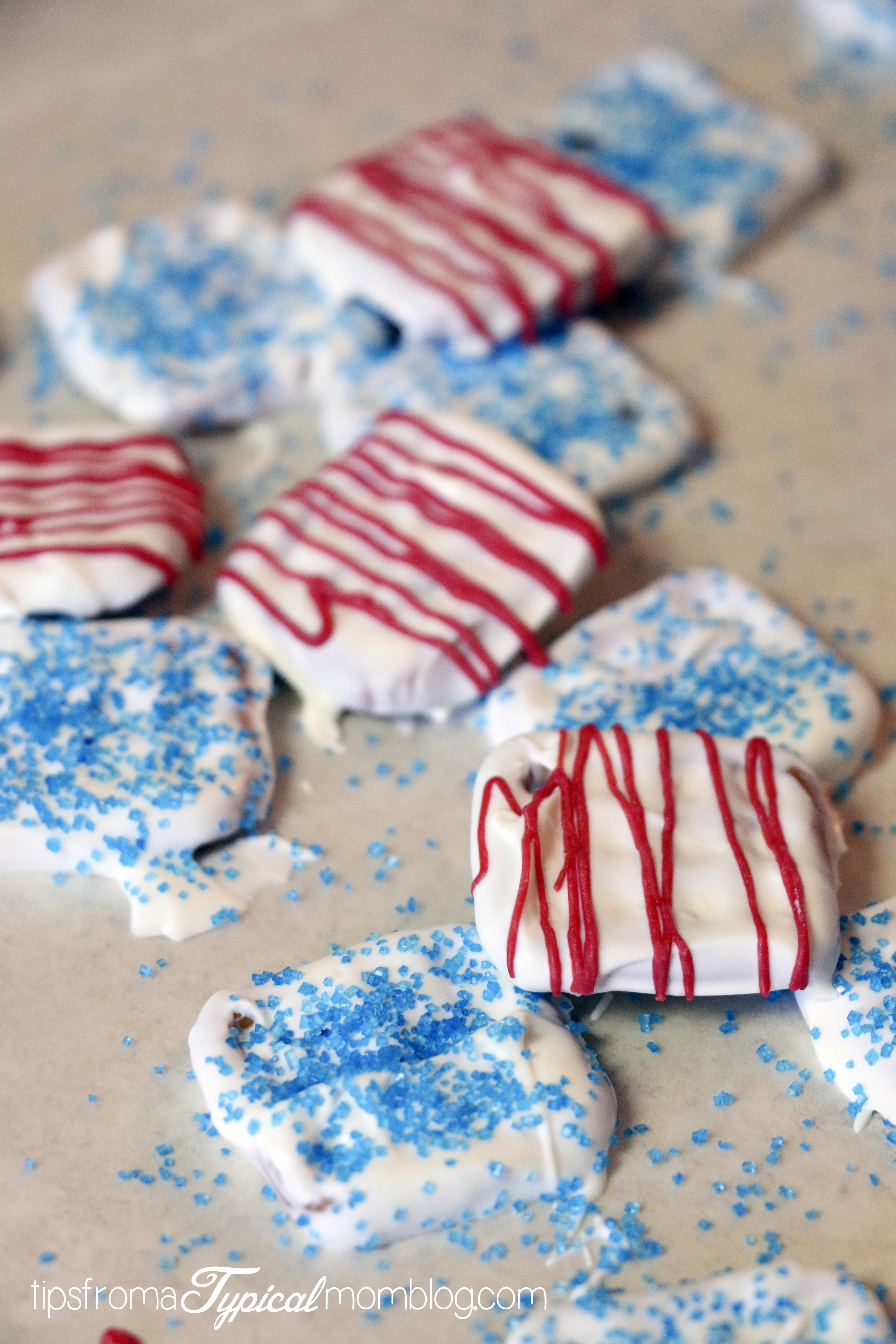 I love chocolate pretzels! These are so festive and great for those July 4th parties!
