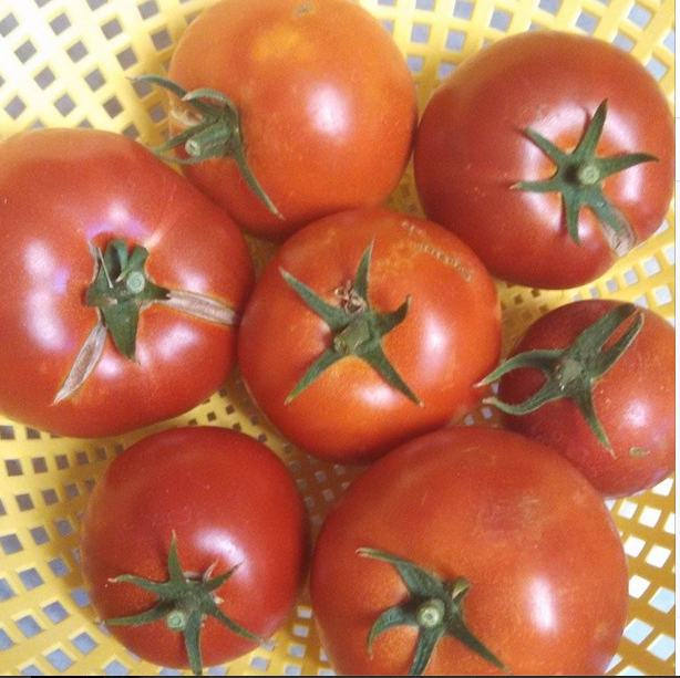 We were at a Ward Party and my friend brought a Caprese Salad. It inspired me to make my own at home for dinner. Especially since my daughters garden produced these awesome tomatoes, and a huge basil plant.