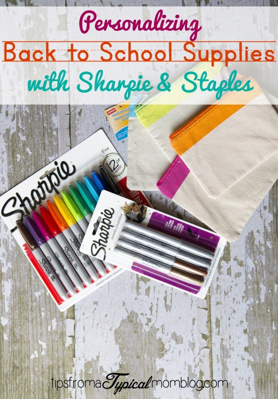 I have a love/hate relationship with Back to School shopping. I love buying my kids new clothes and fresh new school supplies. They are all sparkly and new! I HATE how much money it costs me, especially since I have 5 kids! This is what I love about shopping at Staples. Back to School SALES! And now, all Sharpie fine and ultra fine and highlighters are on sale, while supplies last, at Staples. My kids LOVE sharpies. They love using them to personalize their school supplies. I’m going to show you how they personalized their cute pencil bags.