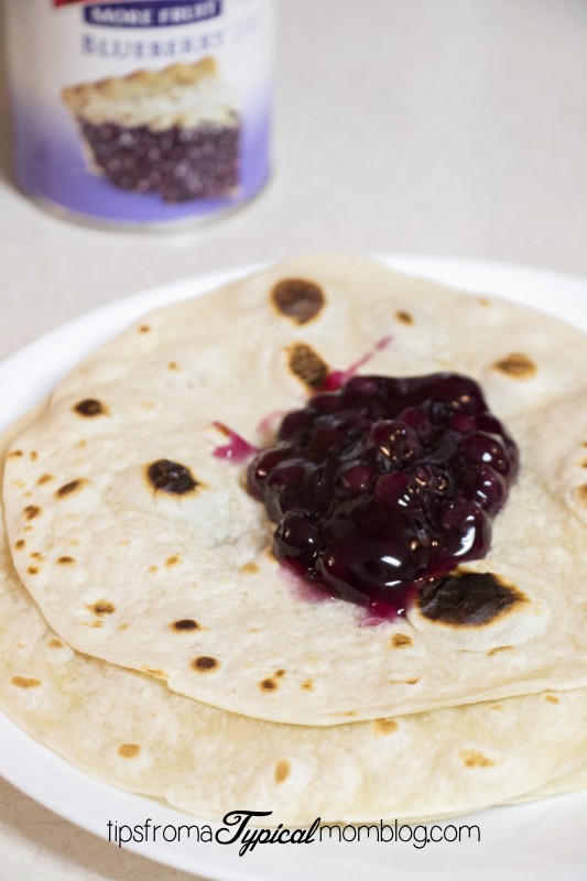 Add about 3 tablespoons fruit filling to center of a tortilla.
