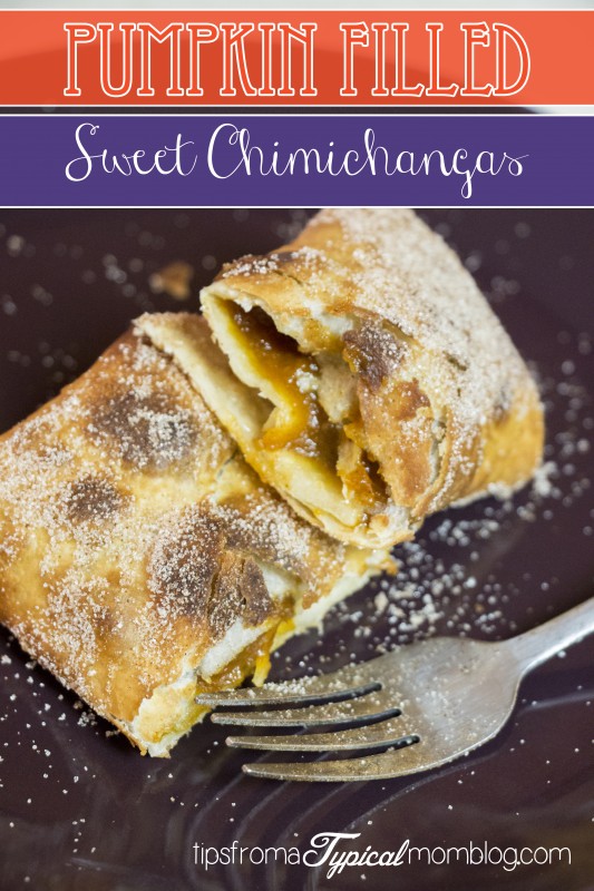 These Pumpkin Filled Sweet Chimichangas are so good! My kids gobbled them up in seconds. The pumpkin filling is perfectly sweet and the cinnamon sugar on the outside is the perfect compliment. It reminds me of Churros.Pumpkin filled sweet chimichangas