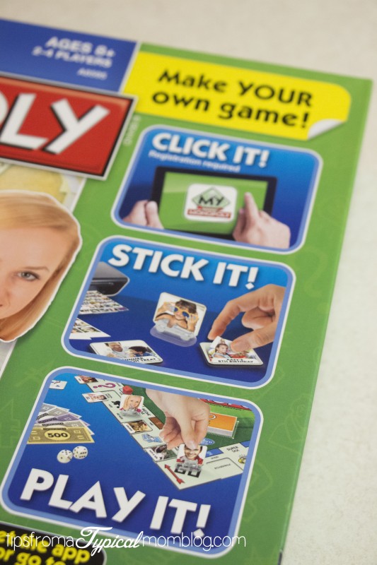 So when I had the opportunity to review My Monopoly, we were all really excited! My Monopoly is played just like regular Monopoly, but you can personalize it with photo stickers. How fun is that?!