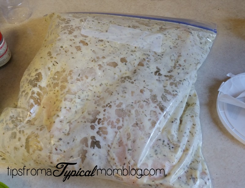 Place chicken in a gallon ziploc bag, pour marinade over chicken and seal bag. Press out excess air and put in refrigerator to marinate 2 – 4 hours.Â