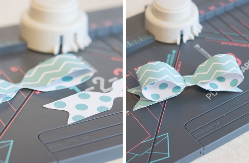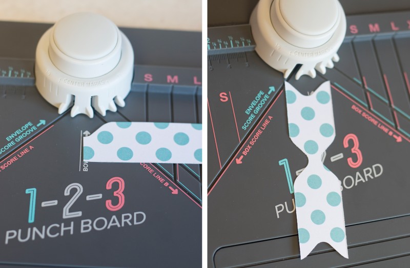 Let’s make a paper bow for the top of our box. These are so simple and quick, and they use the same 1-2-3 Punch Board.