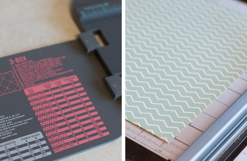 Trim your paper to the correct size according to the measurements inside the 1-2-3 Punch Board.