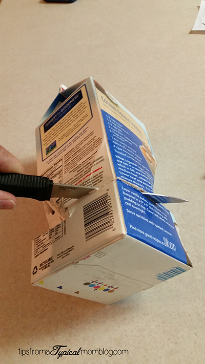 Fold in the sides of the carton to create a “hole”. Alternately you can cut away all that is bent in on ours.