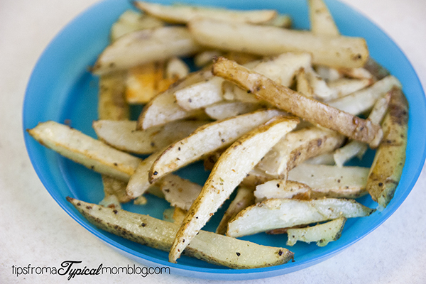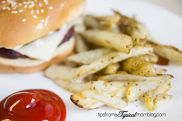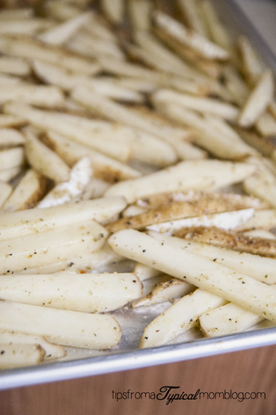 French Fries are my favorite guilty food. I guess I’m a steak and potatoes kind of girl. I can’t resist eating my kids french fries after I have ordered myself a salad at Wendy’s. They are just so good to eat but so bad for me! That’s why I absolutely love making my own baked french fries at home. These herb french fries hit the spot and are actually healthy because they are baked with olive oil instead of fried in a deep fryer.