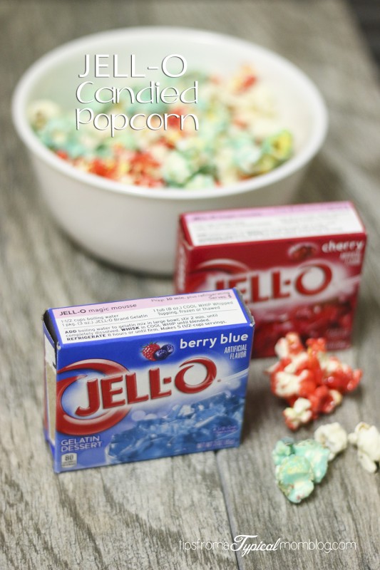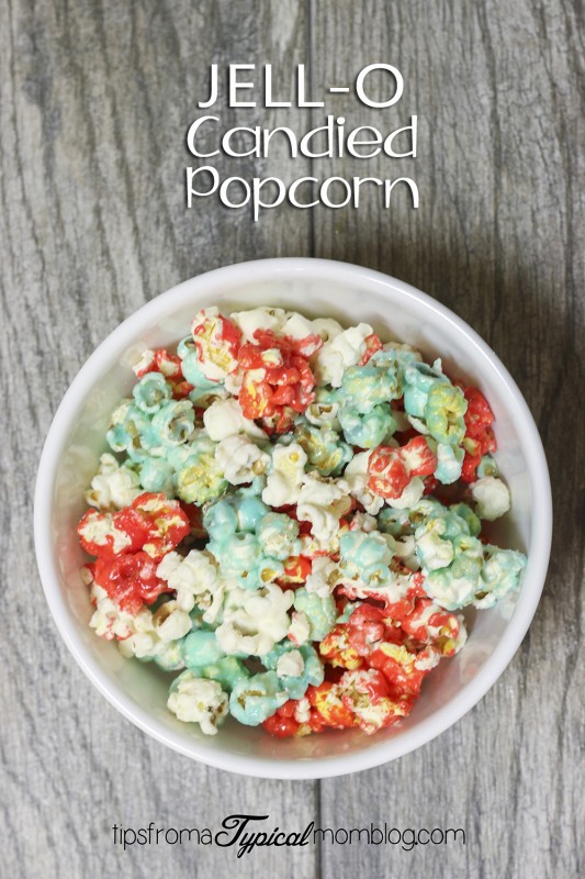 Red, White and Blue Jello Candied Popcorn is the perfect treat for the 4th of July and can easily be adapted for any holiday. You choose the color and flavor because this candied popcorn is made with Jello.