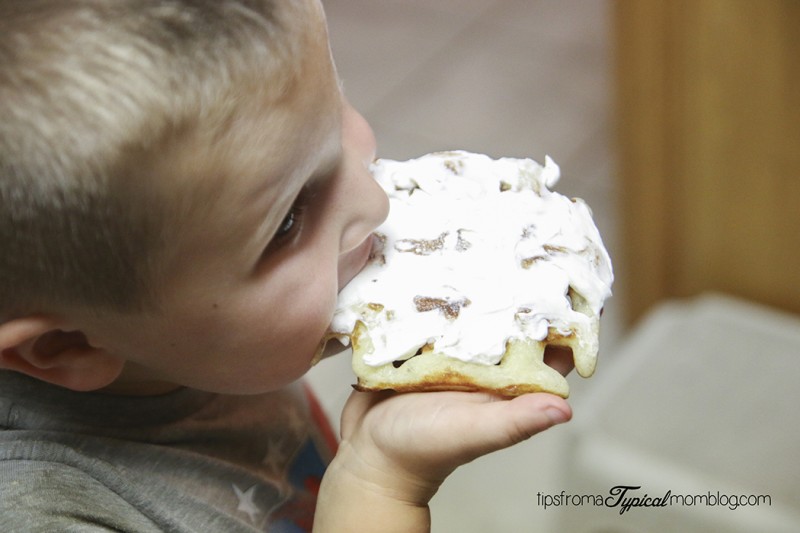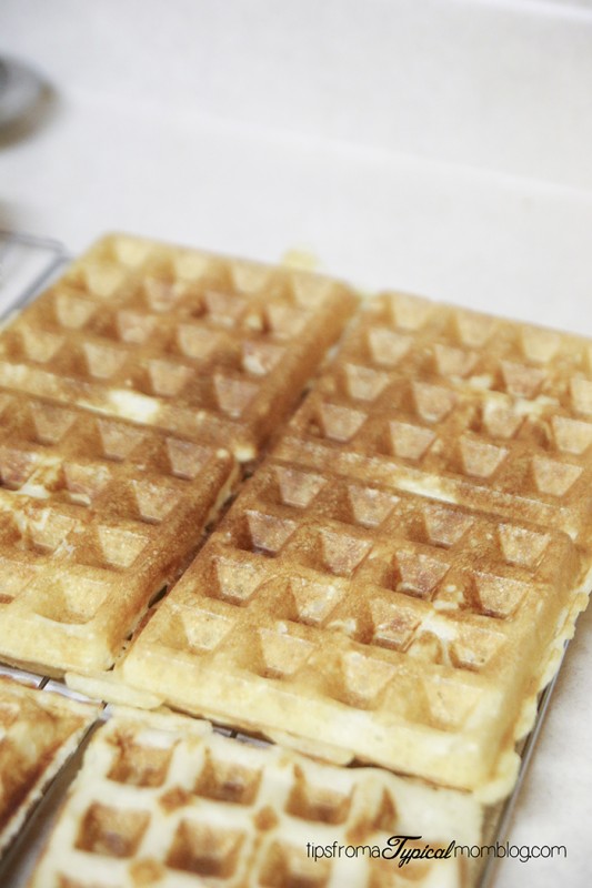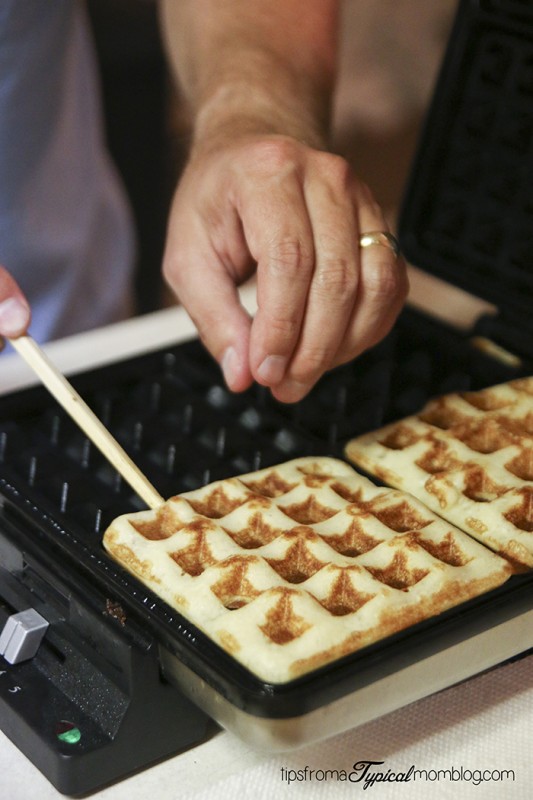 We like to use chopsticks to remove the waffles from the iron. In the image above, the waffles weren’t done quite yet, but you can see in the below picture, they are done.