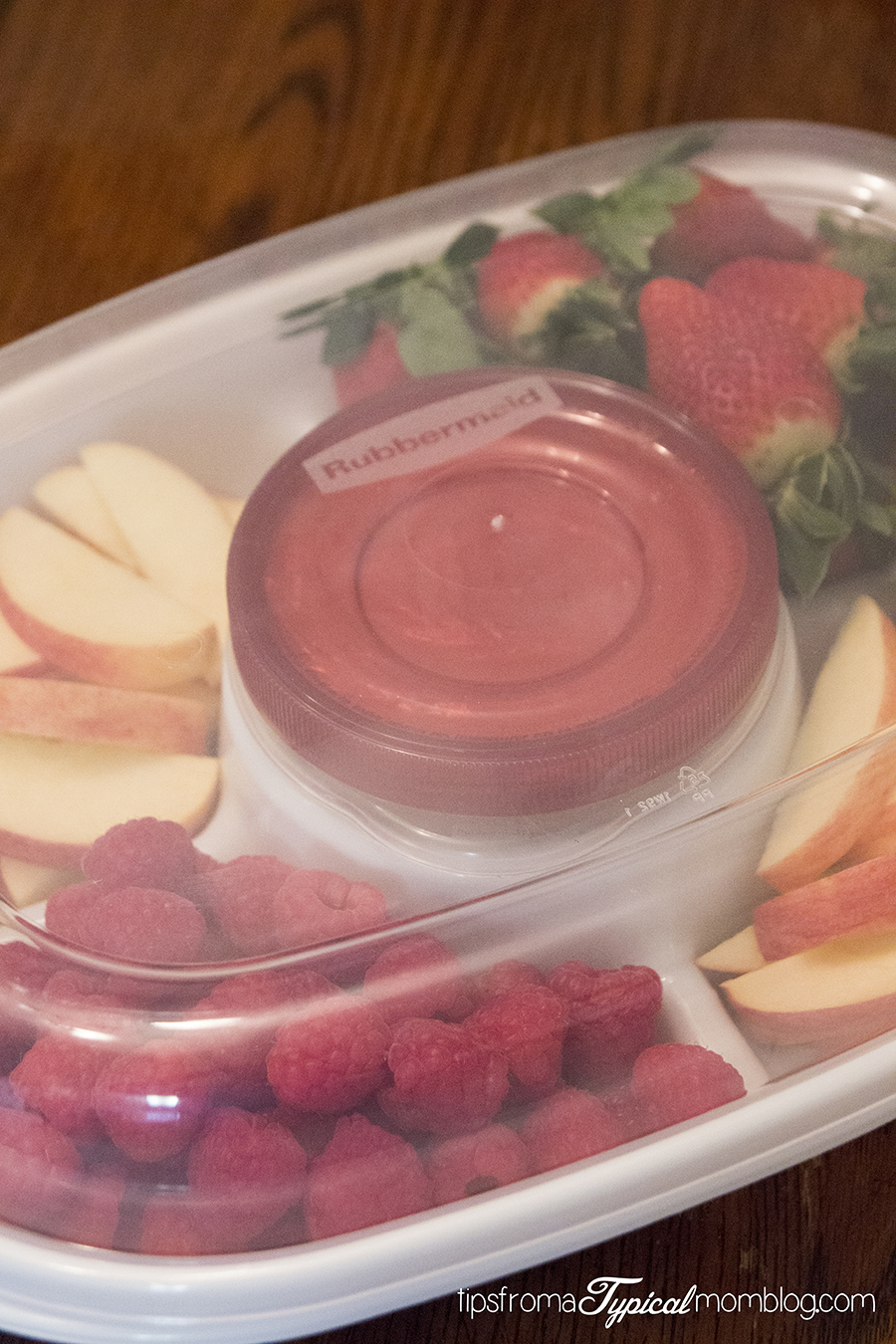 I have been trying to get my kids to eat more fruits and vegetables lately and the Party Platter has made this so much easier. I can divide up the fruit or veggies and put the dip in the middle, then when they want a snack, they can pull it out of the fridge.