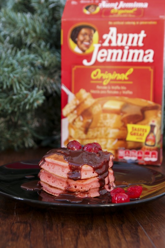 Christmas is my favorite holiday. I’m pretty sure it’s my favorite holiday because of all the yummy food we make together in the kitchen as a family. We have a fun tradition of making a special Christmas morning breakfast. These Chocolate Covered Cherry Pancakes made with Aunt Jemima Pancake Mix are going to be our tradition this Christmas morning.