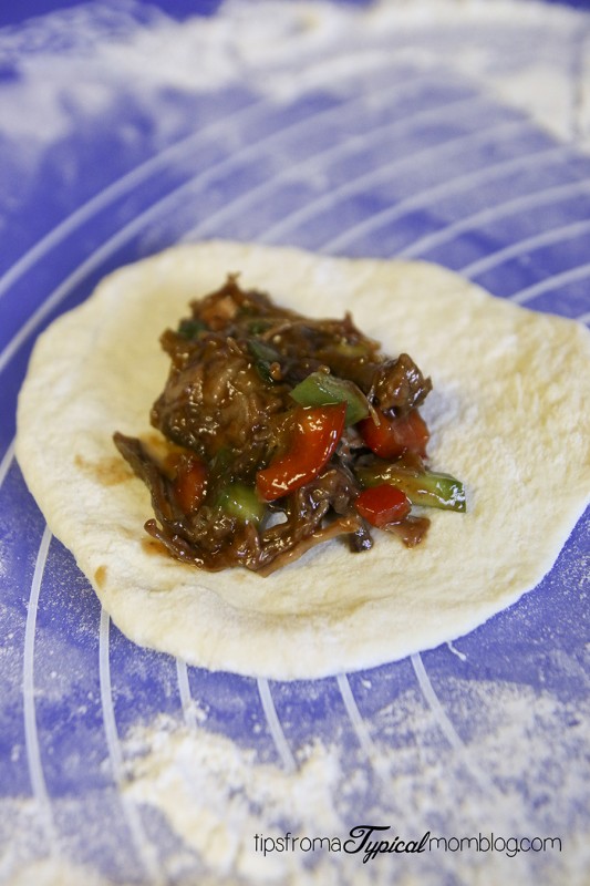 Scoop about 2 tablespoons of the beef mixture into the center of the dough.