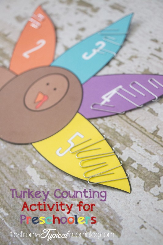 Today I’m sharing this new fun Turkey Counter Printable for Preschoolers. Not only does it teach number recognition and counting, but it also works on Fine Motor Skills.