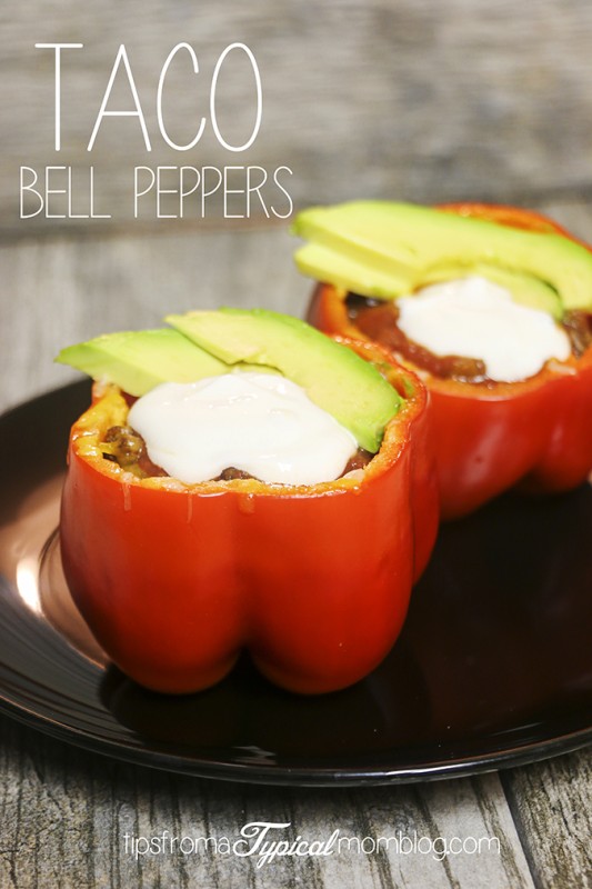 I have decided that I am going to start living a healthier lifestyle. I am trying to eat more veggies and I am starting a Low-Carb Diet. I’ve also stopped drinking Diet Soda (all soda actually). These Taco Stuffed Bell Peppers are so perfect for this new diet of mine. I thought I’d share the recipe with you because it’s so easy and the kids will love them.