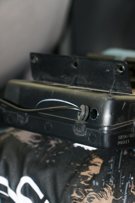 Hi! I am the lucky daughter that gets to drive our old 2007 honda odyssey throughout college *hah* and I just bought the adapter on amazon and am waiting for this piece to add it to the car– this is a very helpful visual to guide me but I am a little confused as to where I should put the small white “box” after feeding the chord through the channel? It sort of disappears in the following pictures and I cannot figure out where you put it– within the radio complex? Let me know as I am about to do this so I can have my own music/audio books for a long solo trip across the country! (I also hope it lasts the 2500 mile trip with 230k + miles already driven on it by my mom 🙂