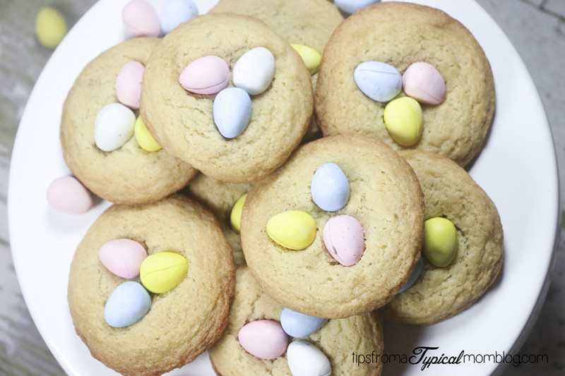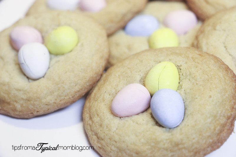 Scoop the cookies by the 2 tablespoon size about an inch and a half apart on a baking sheet and bake at 375 degrees for 7-10 minutes or until the middle is set and the edges are a golden brown. Immediately after you pull the cookies out of the oven, press the desired amount of Cadbury Eggs into the hot cookie. I chose to do 3 different colors on each cookie. Let cool for about 3 minutes on baking sheet then remove to a cooling rack to continue to cool. Store in an airtight container for up to 2 weeks.