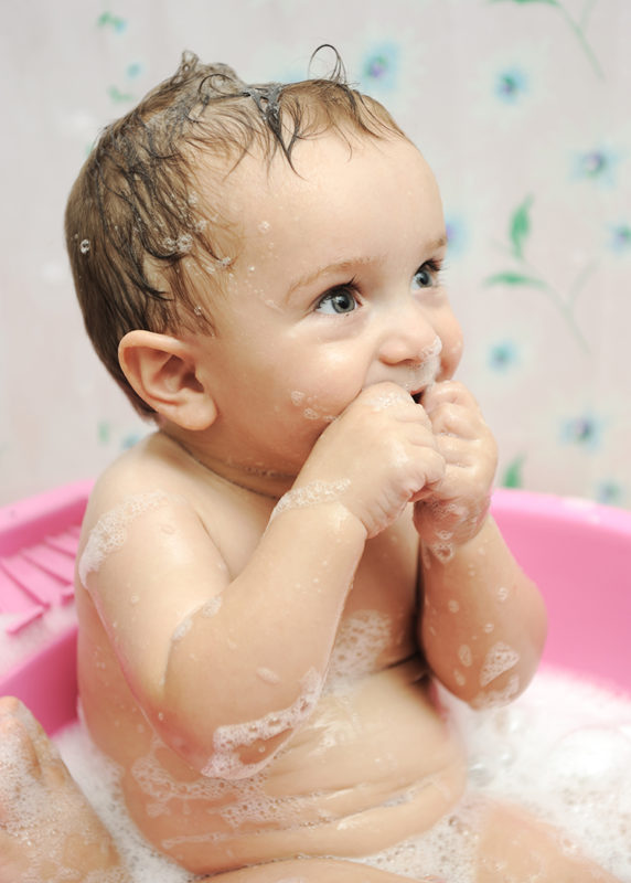 8. Make tub time safe. Prevent scalding by adjusting your hot water heater so that the water is no hotter than 120 degrees. Install no-slip strips on the bottom of your tub and a soft cover on the faucet to protect tender heads. Most important, never leave your baby or toddler alone in the tub, even for a moment.