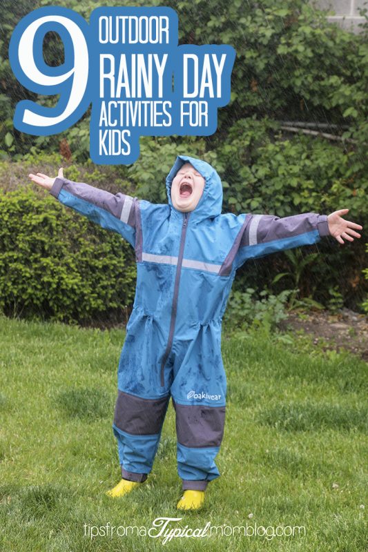Now on to the fun activities to do outdoors with your kids on a rainy day. Just make sure you pick a lightening free day!