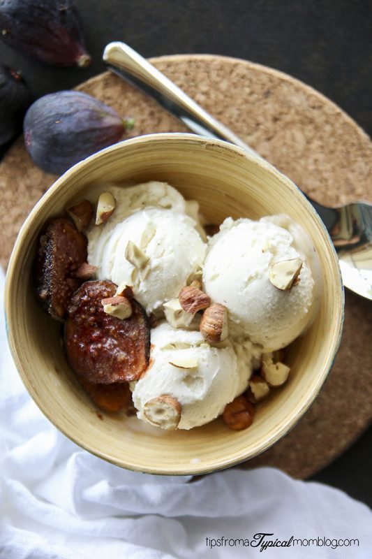 - Divide figs among 4 bowls. Spoon 1/3 cup of Breyers® Natural Vanilla Ice Cream into each bowl and sprinkle with hazelnuts.