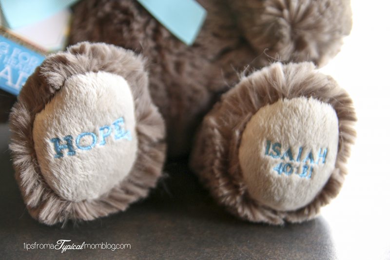 First I saw these adorable teddy bears. My niece just had a baby boy and she will love this. On his little foot is says Hope, with a scripture reference.