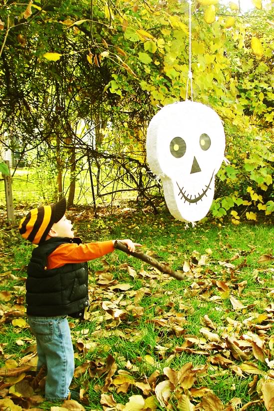We have had ghosty pinatas, treat bag decoration contests, relay races, and other easy games. Â When my kids were really small we played “duck, duck, goose” as “ghost, ghost, BOO!”