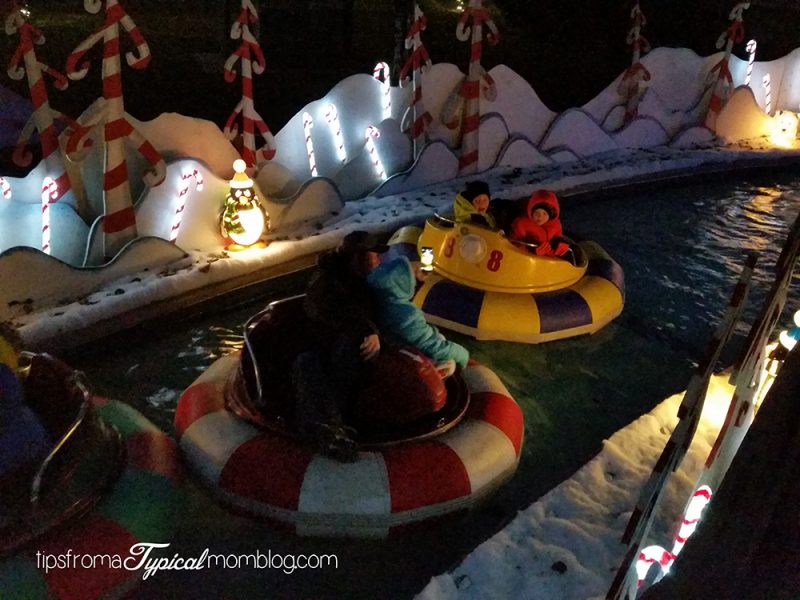 Lazy River Christmas Cruise Boat Ride: Yet another fun and relaxing ride in the summer time, now you can enjoy it in the winter in a boat. This was our favorite ride. We had fun just sitting back and realxing on the Christmas Cruise. It would be a little hard to get in the boat with a baby, so I’d recommend ages 1+.