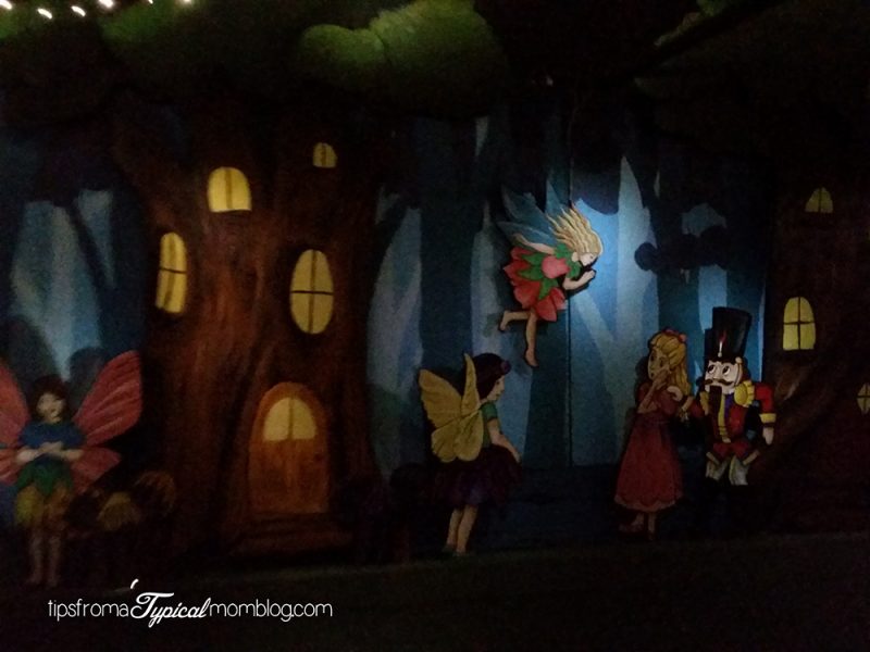 The Nutcracker Story Ride:Â This is a new ride this year. You get to pile your family into a side by side pedal car and wind your way through the Nutcracker story. They have Candy Canyon, Gingerbread Village and Fairy Forest. The Nutcracker and Clara are there too fighting the Mouse King. You can only fit 4 per car, and need an adult to be with the kids in each car.Â