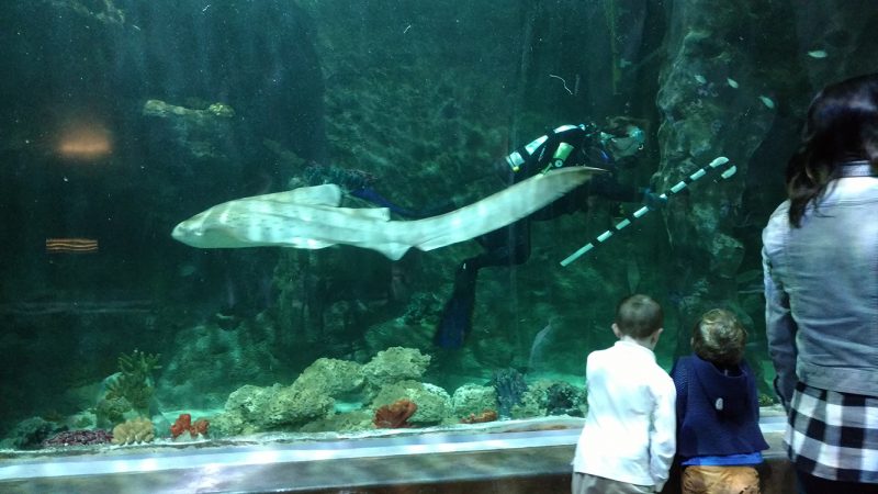 But I must say that my favorite part of the aquarium is the Shark Tunnel. It’s so fun to be “under the water” with the sharks, fish and sea turtles.