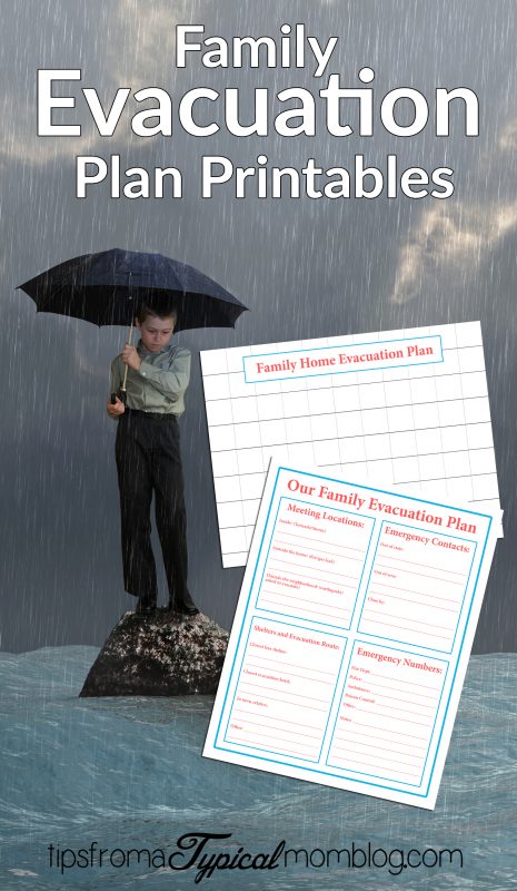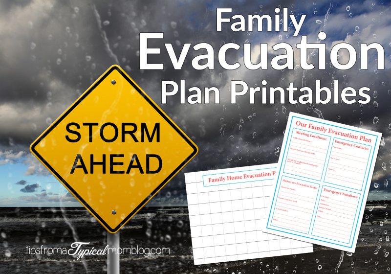 Annette from Tips from a Typical Mom has a Family Evacuation Plan which includes things like Meeting locations, emergency contacts, shelters and evacuation routes, and other emergency numbers.