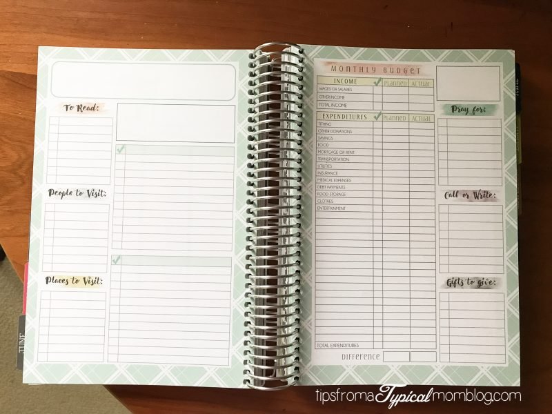 Believe me when I say this planner has everything you need to organize your life. So many pages for each month to keep track of different types of to do lists. Planning pages for every holiday. Worksheets for a budget.
