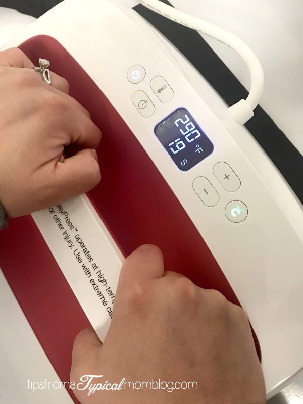 The Easy Press 2 makes ironing on vinyl a cinch! Seriously. I used to make things all the time with my iron and I wasn’t sure if I was using the correct temperature, and honestly a lot of my projects didn’t last very long because I wasn’t doing it right. With the Easy Press 2 though, it was so simple. You set the temperature recommended for your project, you let it warm up, then you use the handy timer right on the press and hold it down on your project until it beeps and you’re done! Easy peasy!